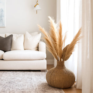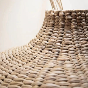 This curvy Woven Palm Weave Vase is made from Chuspata reeds, a natural palm fabric hailing from the shores of Lake Pàtzcuaro.